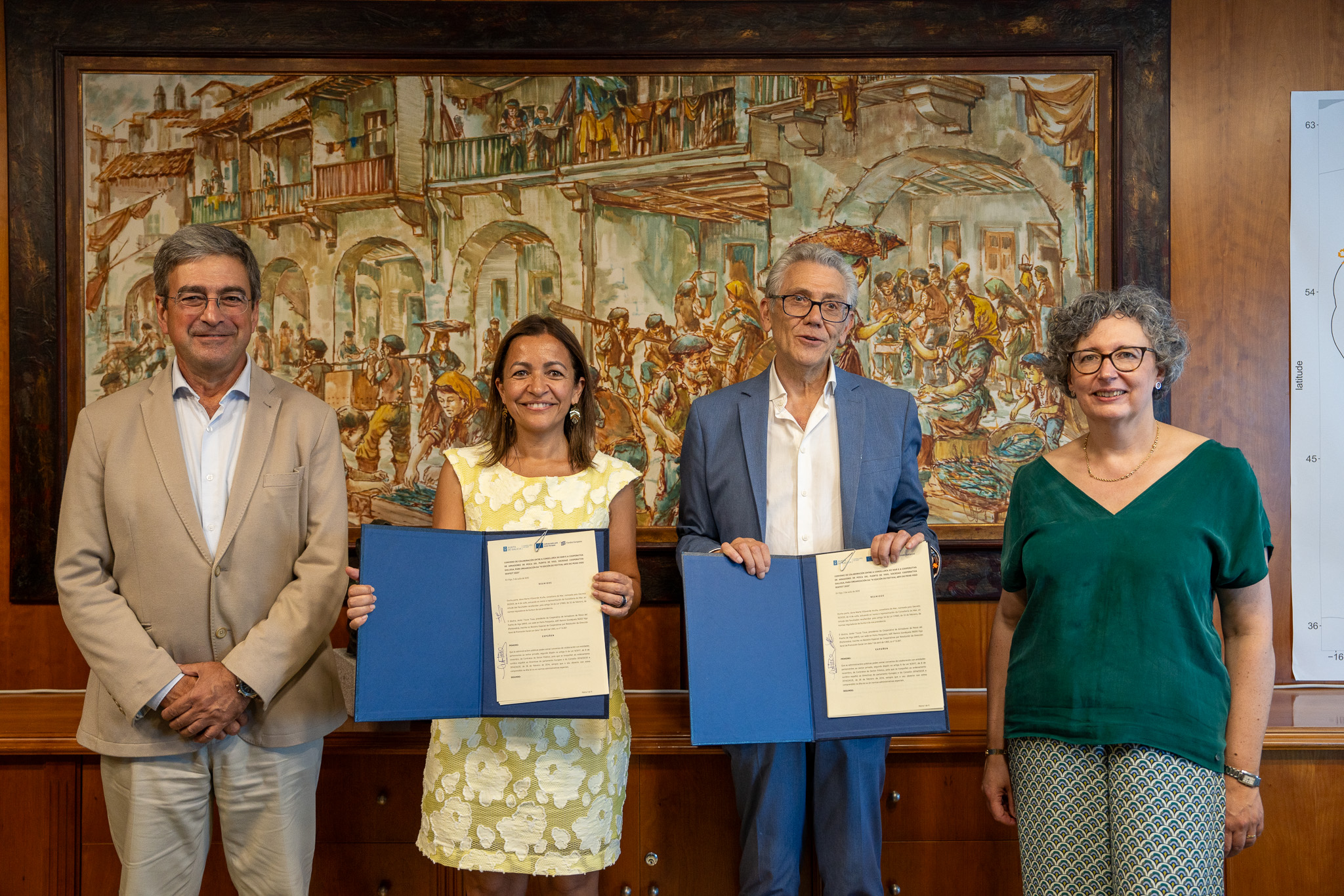 La responsable autonómica, Marta Villaverde, y el presidente de esta entidad, Javier Touza, firmaron el convenio de colaboración que permite el desarrollo de esta iniciativa, que cuenta con una inversión de la Xunta de Galicia de 118.580 euros, a través del Fondo Europeo Marítimo, de Pesca y de Acuicultura (FEMPA). Se celebrará desde el 10 al 13 de julio y contribuye a consolidar la ciudad olívica como la capital europea de pesca.